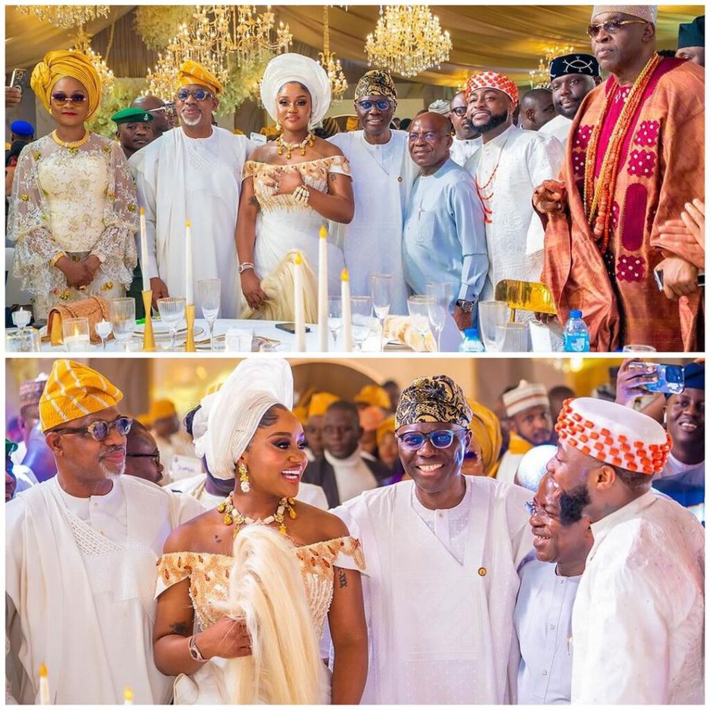 La somptueuse cérémonie de mariage, témoignage de l’histoire d’amour durable du couple Davido et Chioma, a attiré une constellation d’invités de haut niveau issus de diverses sphères de la vie. Le mariage, qui s’est tenu à Harbour Point sur l’île Victoria, était une grande assemblée de l’élite nationale, avec un essaim de dignitaires, de célébrités et un éventail de personnalités notables du monde des affaires, de la politique et du divertissement.L’ancien président nigérian Olusegun Obasanjo était présent ainsi que plusieurs gouverneurs.