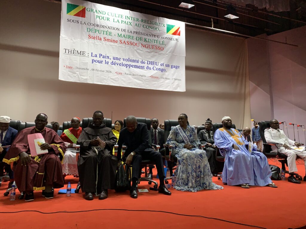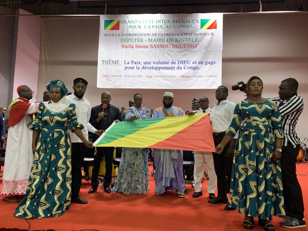 Devant les autorités politico-administratives et militaires, plus de 2 000 fidèles issus des confessions chrétiennes, musulmanes et animistes se sont rassemblés, le dimanche 8 février 2026, au Palais des Congrès de Brazzaville, à l’occasion d’un grand culte interreligieux dédié à la paix. Placée sous le thème « La paix, une volonté de Dieu et un gage pour le développement du Congo », cette rencontre spirituelle d’envergure s’inscrit dans un contexte marqué par l’approche de l’élection présidentielle.